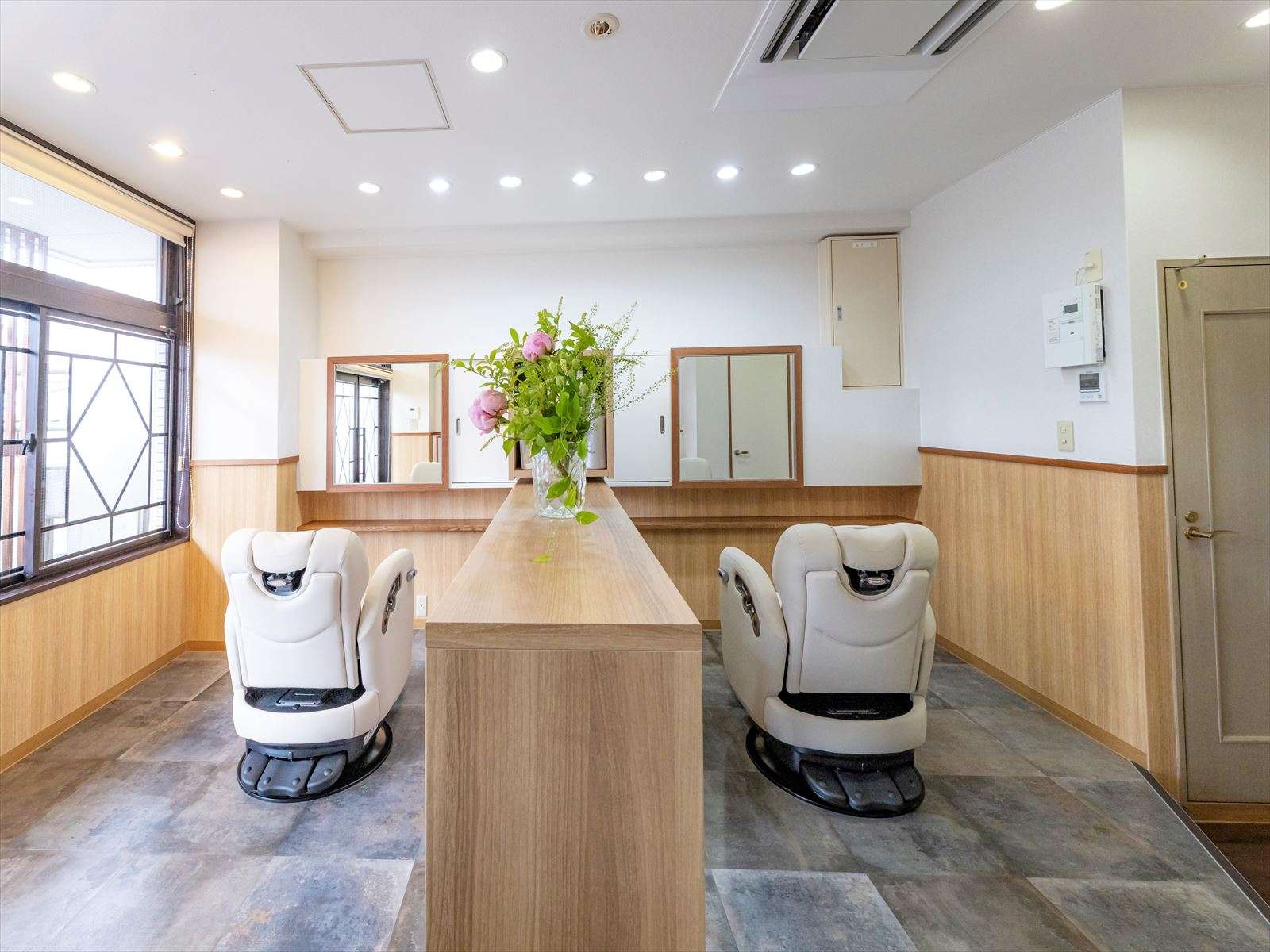 お身体に不自由があるお客様も安心してお越し頂けるよう、店内はセミバリアフリー設計。移動の際にも負担が少なくなるよう段差を減らした設計にしております。 セットブースも移動式シャンプー台を設置していますので、お客様がシャンプーの都度、お席の移動する手間もなくリラックスしてサロンタイムを過ごしていただけます。